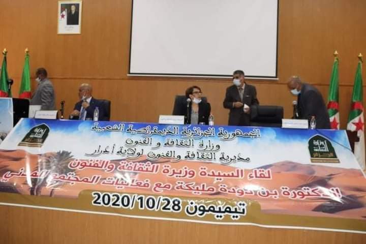 حلت وزيرة الثقافة والفنون مليكة بن دودة، والوفد المرافق لها، بولاية أدرار أمس في زيارة عمل، تفقدت خلالها المركز الجزائري للتراث الثقافي، المبني بالطين بمدينة تيميمون، حيث استمعت لشروحات حول عمل المركز.